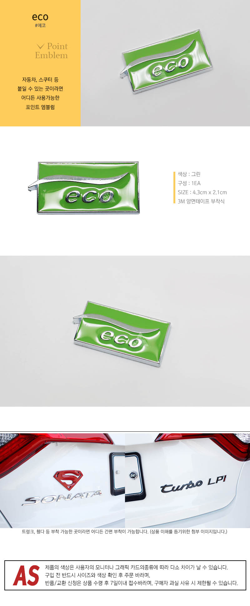 데칼(스티커) 상품은 주문제작 방식이므로 제품의 하자 외에 고객님의 단순변심으로 인한 교환/환불은 유선상 안내를 해드리고 있습니다.