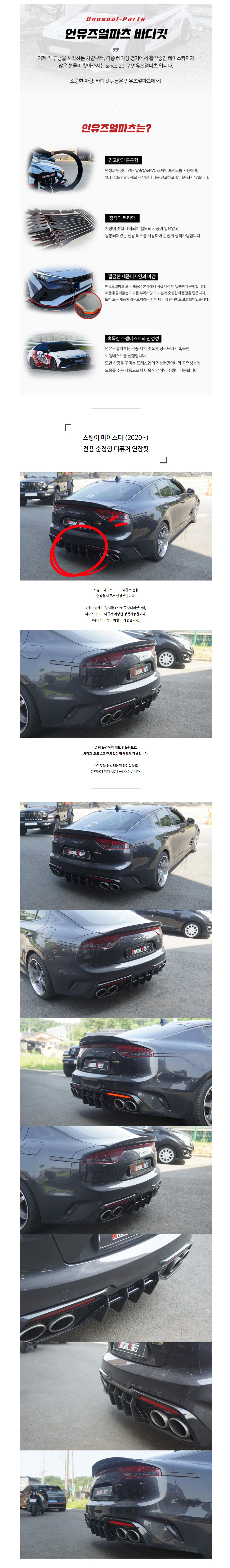 스팅어 마이스터 디퓨저연장킷 빅핀 순정형 바디킷 에어댐 튜닝 신형 디퓨져