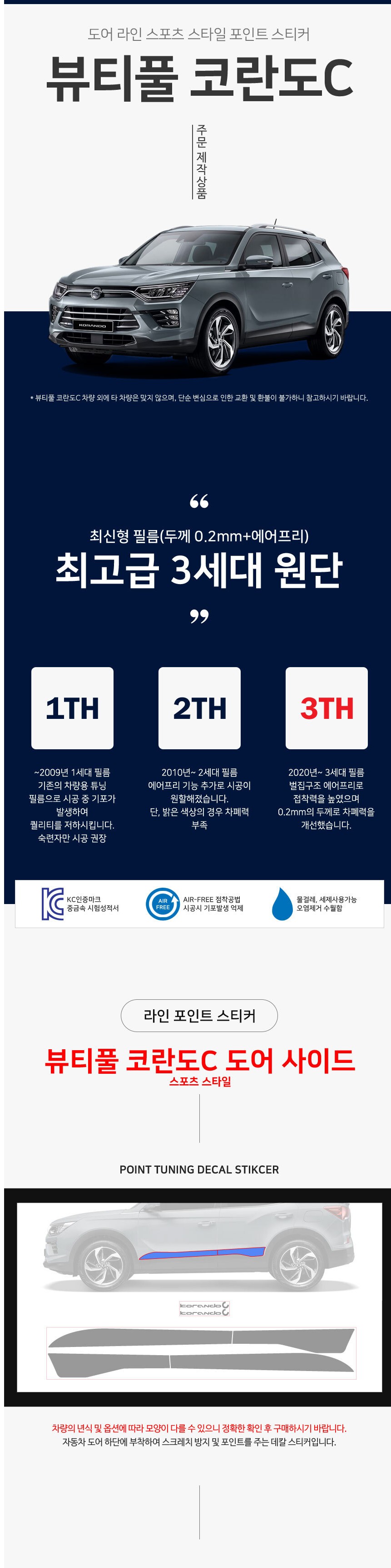 뷰티풀 코란도C 도어 사이드 라인 스포츠 스타일 포인트 데칼스티커